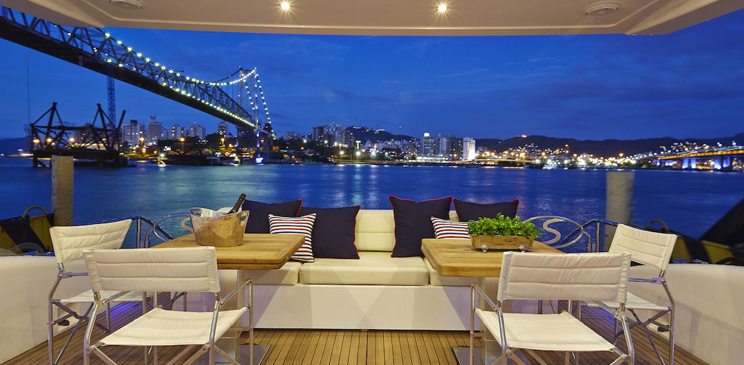 Qualidade e sofisticação se encontram neste iate exclusivo. Seu amplo espaço interno, totalmente personalizável, integra todas as áreas de convívio, com acabamento primoroso em cada detalhe.