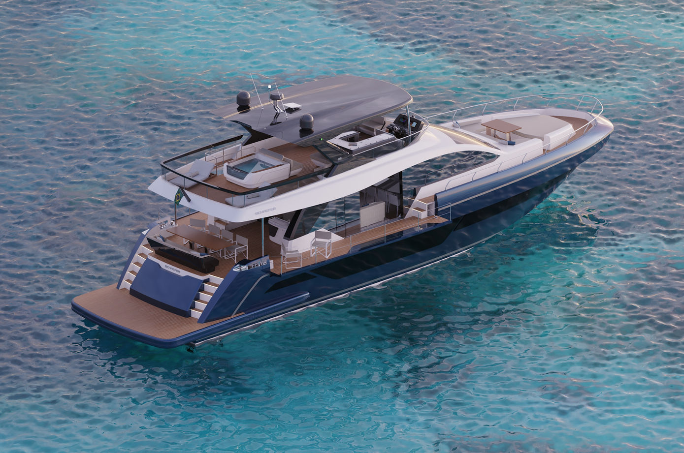 Qualidade e sofisticação se encontram neste iate exclusivo. Seu amplo espaço interno, totalmente personalizável, integra todas as áreas de convívio, com acabamento primoroso em cada detalhe.