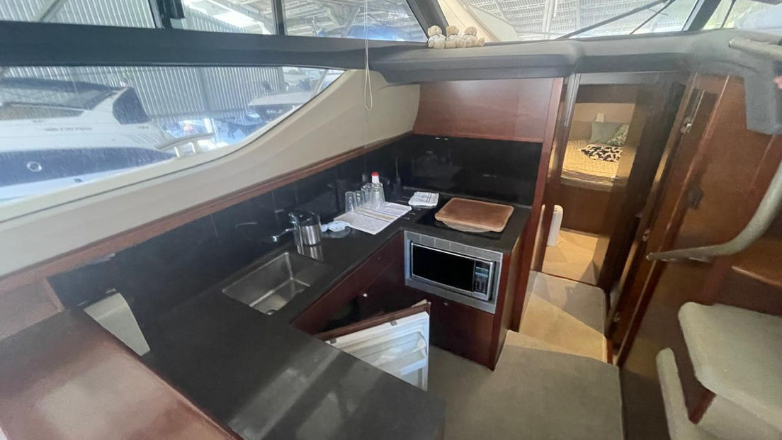 Gerador Cummins ONAN com 220 horas | GPS | VHF | Radar | Bow Thruster | Piloto | Ar condicionado | TV | Sistema de Som | Cozinha Completa | Flaps
